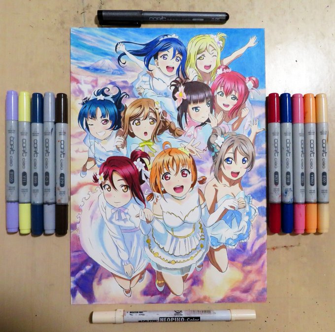 『Aqours 4th LoveLive! キービジュアル』描き上がりました。YouTubeにて公開予定です。ライブ応援の為、特例で11月中旬のライブに間に合うよう動画の順番を入れ替えて優先して公開します٩( 'ω' )و