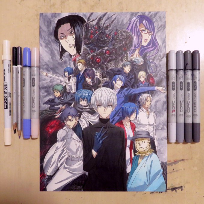 今日の模写動画撮影が終わりました。『ソードアート・オンライン アリシゼーション』彩色4日目は背景の下半分までで終了です。青い部分の薔薇は元絵が非常に凝っていて描き込みが細かいので、コピックが使えず全て色鉛筆で描いています。赤い水面部分もキャラが居るため慎重に描き込みました٩( 'ω' )و
