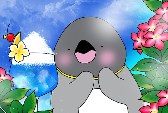 暑さをしのぐお飲み物も楽しんでいるペンちゃんどす。