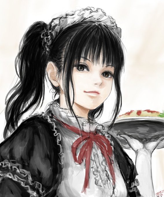 『転んだ人に手を差し伸べる、ちょっとクールで優しい、ツインテールのメイドさん』