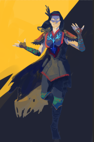 i get to draw less metal and more cloth this time, and some bright colours!
