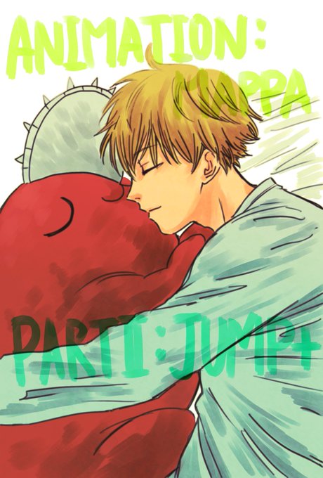 チェンソーマン面白かったです〜!これからも楽しみにしてます!! 抱き枕ポチタと寝るデンジ