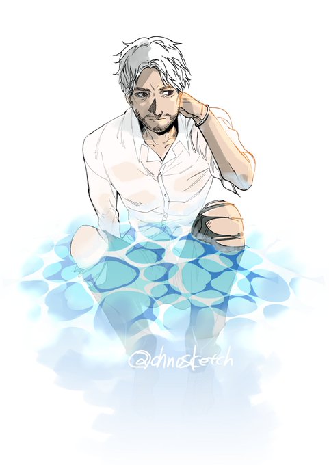 遅刻しました #ヒゲ版深夜の真剣お絵描き60分一本勝負 お題 【濡れシャツ】 【白髪/白髪まじり】