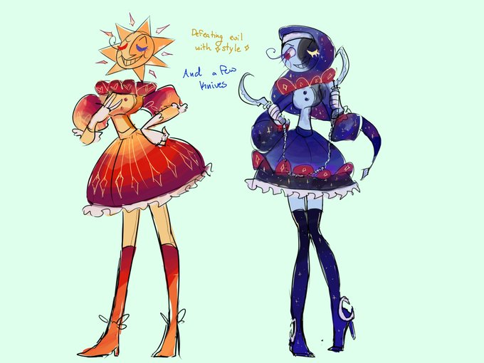 Magical girl au sort of thing. Inspiration from @ArtLyssi and style inspired from pinkiepig on Tumblr. #sundrop #moondrop #fnafsb #fnafau