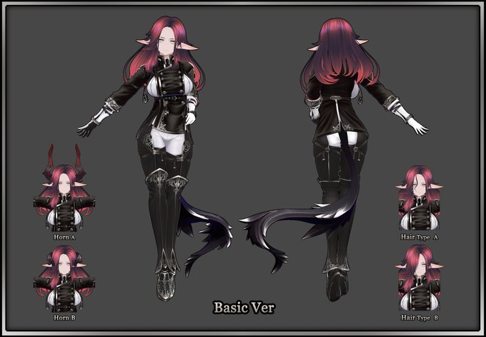 質感調整しつつ新しい角とメカクレ差分追加。 モーフで切り替えをできるようにする予定。 ケモミミは鬼姫のお試しで適当に ぶっ刺しただけなので実装予定は無いです…。 (髪とか顔に色々変更が必要になるので 余裕あったら付けるかもしれないけど…。 #VRChat