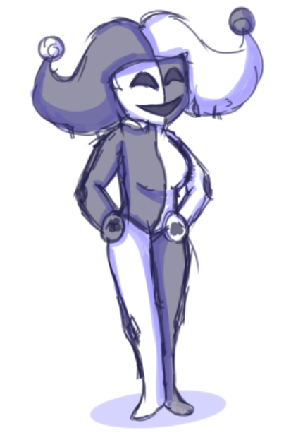i forgot to post this but this is what came out of me designing a character off of my 3 recently used emojis (which was 👏🤡♥️) i named her bonk and now we're here