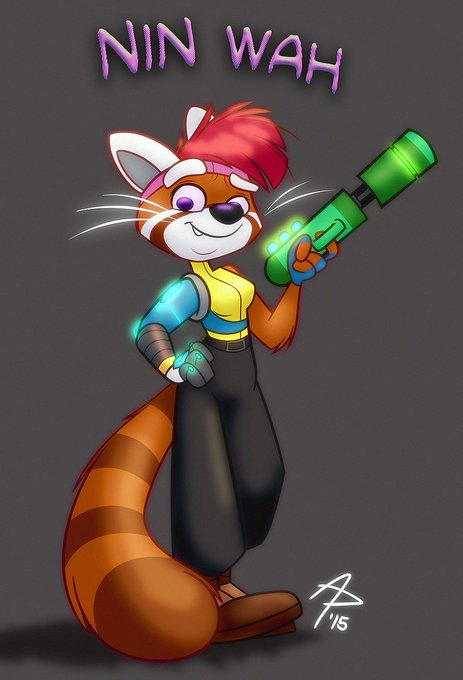 I haven't posted anything in a while, so here's a full render I did for @ferretface of his character Nin Wah from his delightful comic Commander Kitty - https://t.co/5WPLs7pMS8