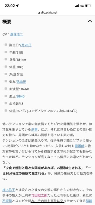 ネウロの最推し、笹塚さんなんだけど改めて彼の血圧見て迷走神経反射起こした時のおれと同じらいの血圧で、ようその体温と血圧で普通に歩いてるね……って仕事でその道をそれなりに経験した身からの不安