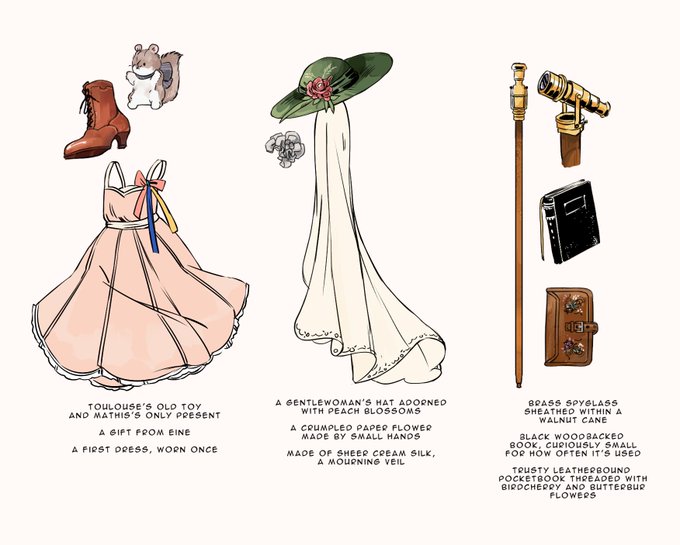 Designs for side characters in Ma mère l'Oye! Toulouse's older brother, a father and daughter, a lance lesbian, and a rather big butler 🐇