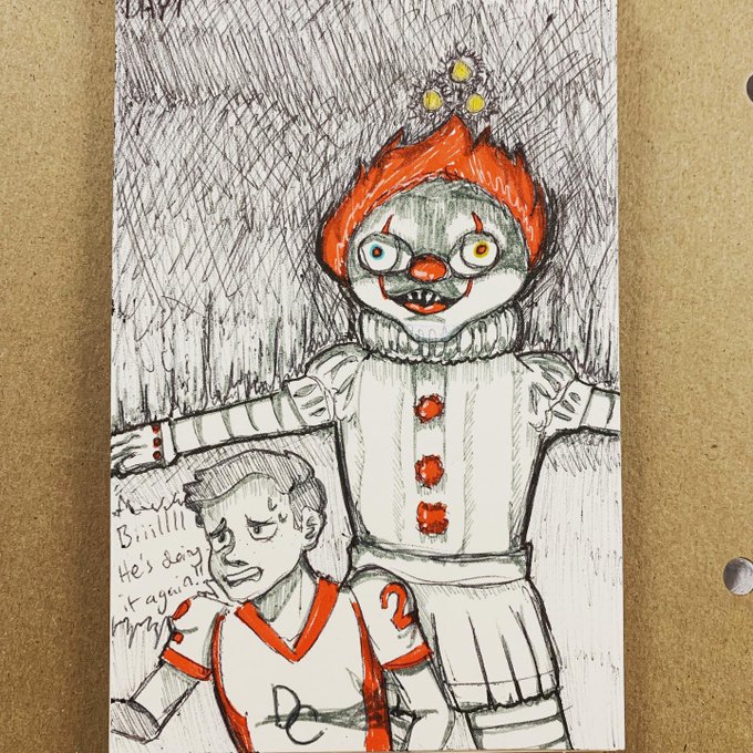 Day 1 of inktober! This is my au where Pennywise is just the scary middle school football teams gross mascot costume. (Richie’s the one in there btw. Is T-posing still a relevant meme???) #it2019 #richietozier #eddiekaspbrak #inktober2019