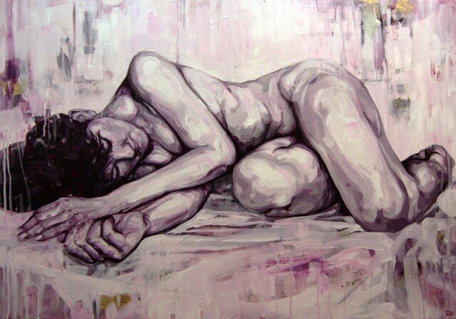 Shelley reclining - Acrylic on wood. 120x50cm #art #painting #figurative #nude