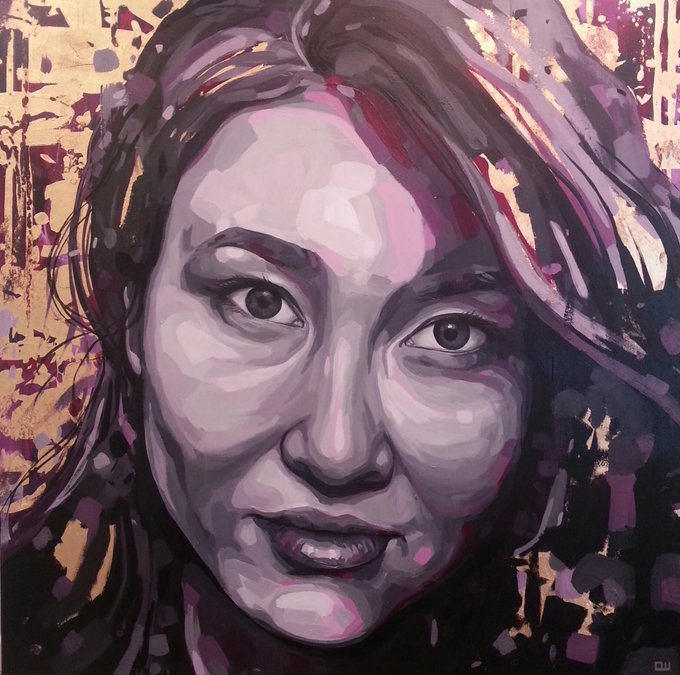 New work at the @LilfordGallery - Joanne. Acrylic and gold leaf #canterbury #kent #art #winconek #portrait #gold