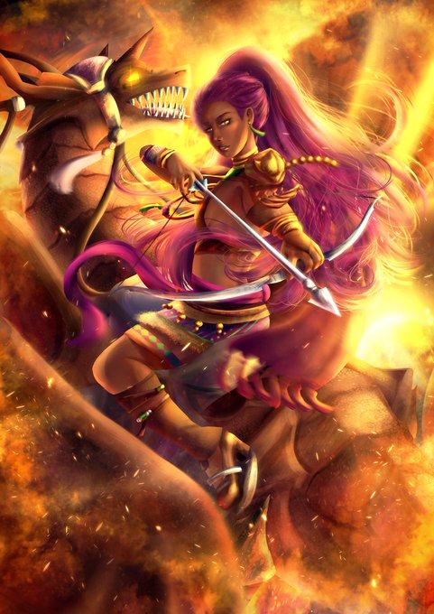 @EwylanaR Thank you for day 2, these are fun to respond to! The wyvern piece is fairly older and I've improved a lot since, but included it as I'm still fond 🧡