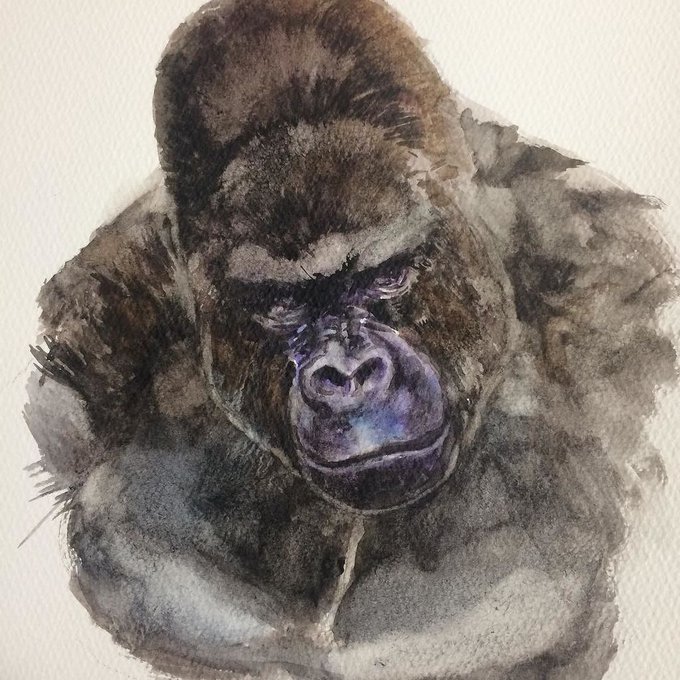 (キリッ #アナログ #透明水彩 #動物 #ゴリラ#シャバーニ https://t.co/339CxiOzgM