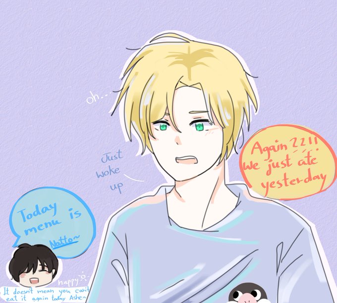 E:Today menu is natto~ A:Again?! We just ate yesterday E:it doesn't mean you can't eat it again today~ A:hm...= = #BANANAFISH #asheiji