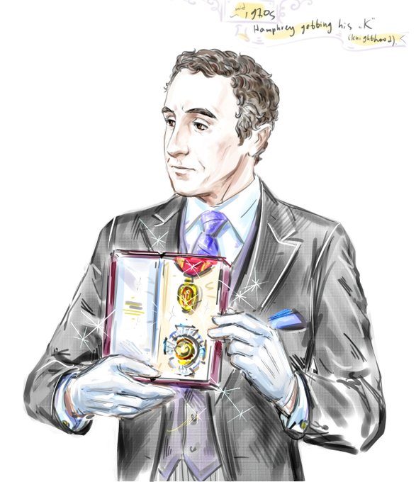 Sketch of Humphrey Appleby getting his Knighthood (circa the 1970s I think). 🏵️Tagging @YesSirHumphrey cuz I think you might enjoy a bit of nostalgia (also I suspect Sir Humphrey would be Lord Appleby long before ourdays 😁)