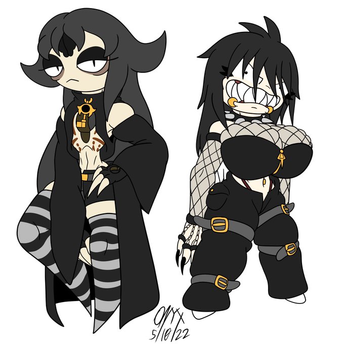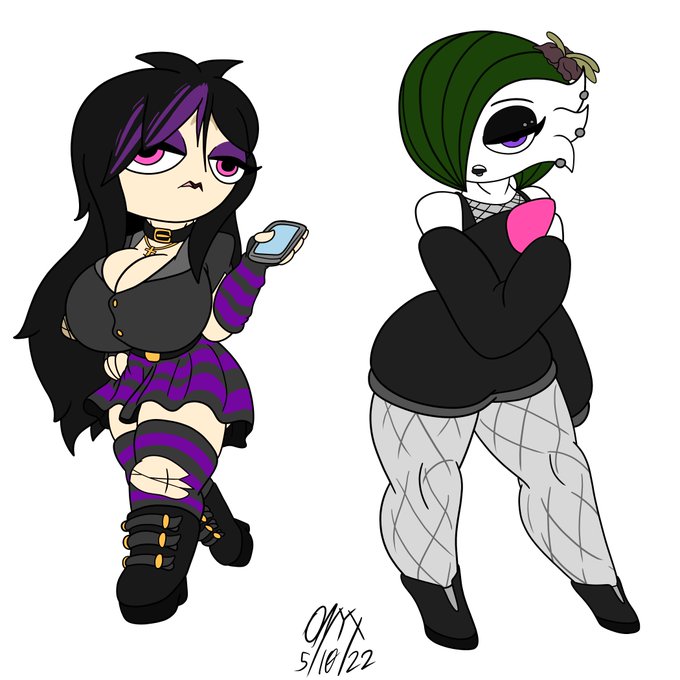 Finished this 3-day long experiment where I dressed up Kiki, Taylor, Sihn, and Pazz (in that order) in goth outfits, and honestly?... I'm gonna be drawing them in these a lot more often