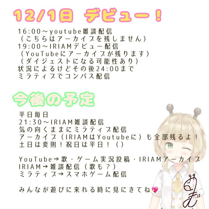 12月1日19:00から初配信します🎂💗