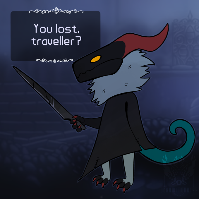 I started playing hollow knight (its very good) and so I doodled this up in between dying for the 2187182793 time (background is a screenshot from the game)