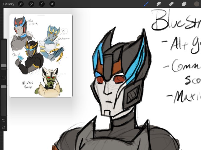 First aid I was more trying to figure out how to draw his face. I decided to just have blurr be masked 24/7 and wreckgar I feel better about this helmet design, the other felt too simple.