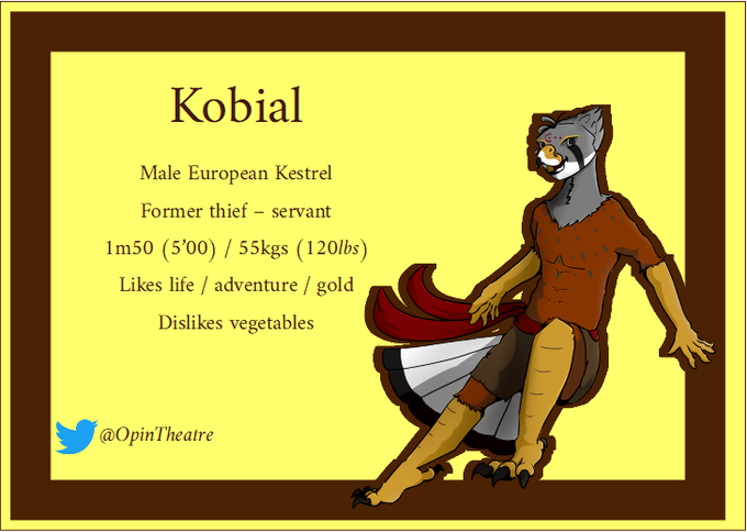 @ZainoDraws Hello! Thank you so much for the chance, the pose is really good! Here is my boy, Kobial the Kestrel birb