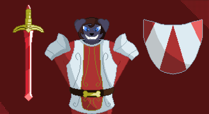 @CeeHaz I got around to making a ruff first draft of my dog knight. Staffordshire bull terrier named Arthur, a Warden who tries to appear friendly but comes off as frightening due to his pointy, formal poses and scary teeth