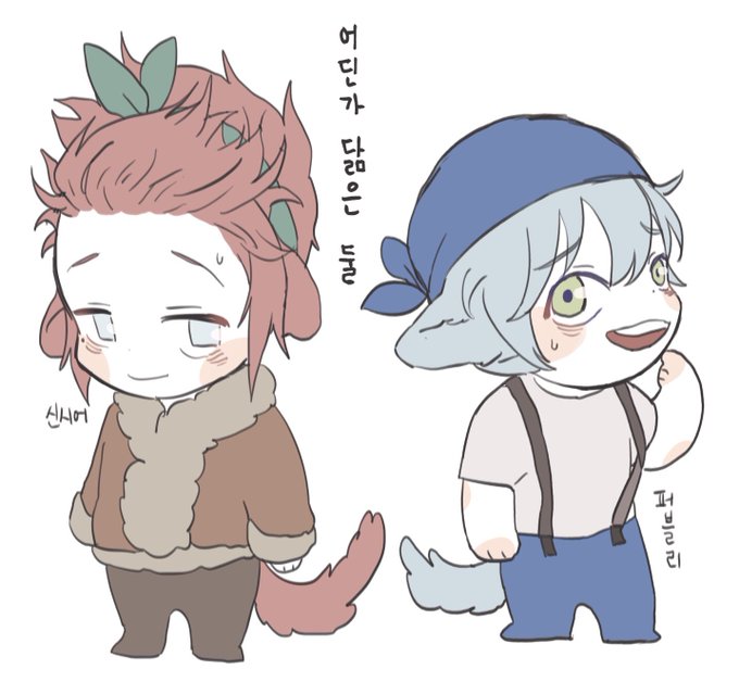 신시어와 헵토미노, 신시어는 리트리버 느낌이고, 헵토미노도 아빠닮은 색 배치지만 종 자체는 리트리버 부근 일 것 같은 스멜,, 타이트니스편 보다가 뽕차서 그림yo~