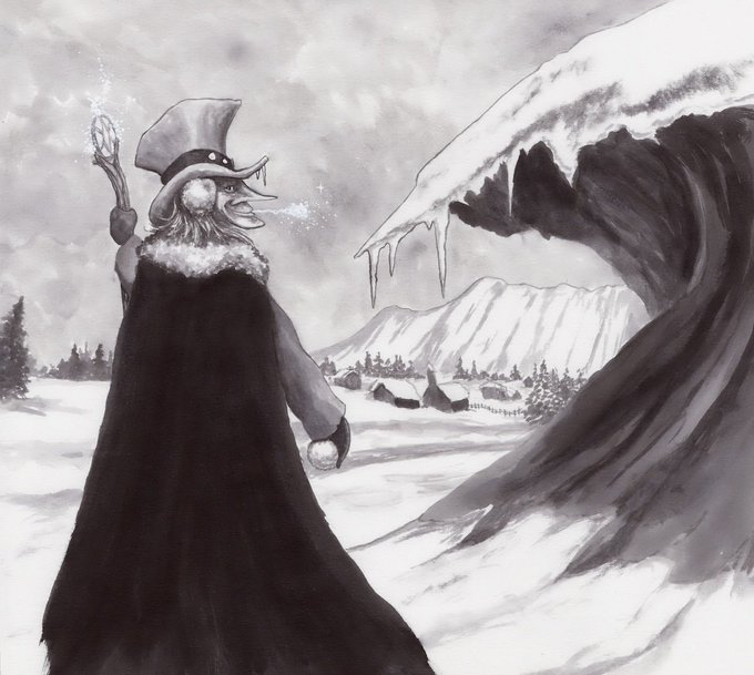 I think this one works for the Dark and Coat prompts. Color India ink on black paper. #Inktober #nighthare