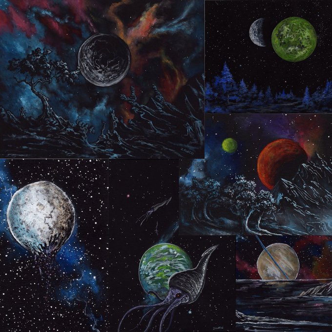 @myriad_x Hi, I'm Mike! I work with a variety of media, including watercolors, ink, and acrylics. The paintings below were done in coffee.