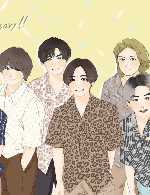 引きだとお顔が良く見えないので少しあっぷに。 一応服の柄も一人一人描きました…😌(模様描いて複製して連続模様にしたりしました)