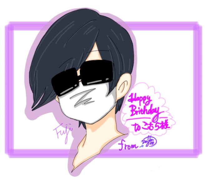 @Komura_2081 こむらさんお祝いイラストを描いてみました。遅れてしまいました お誕生日おめでとうございます これからも可愛い絵を楽しみにしてますね