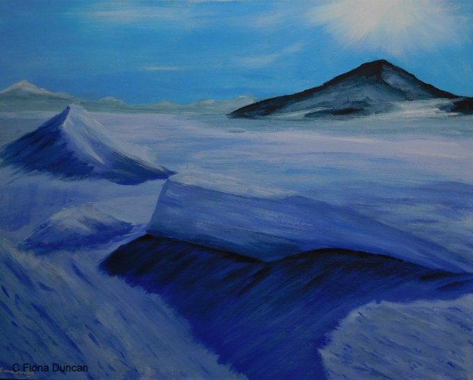 Hi #inbizhour From far far South to far far north. #Antarctica and #AuroraBorealis Acrylic on board. #prints and #greetingcards plus #originalwork available. #freedelivery for greetings cards still available in September