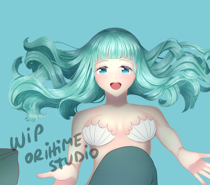 Finished the hair, RIP my hand 😭 - OC Amelia wip #mermaids #originalart #Illustration #digitalartist #drawingoftheday #clipstudiopaint #artwork