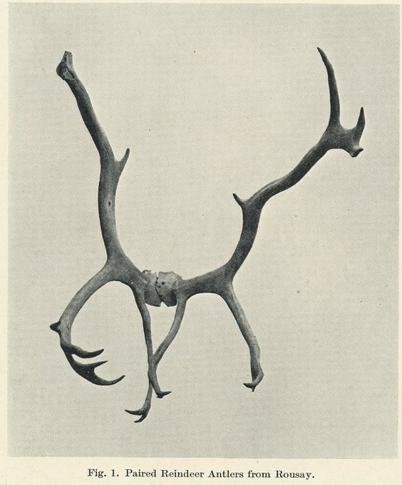 Today's #ArchiveAdventCalendar theme is #Reindeer Reindeer antlers were found in a peat bog in Rousay in the 1930s. They were a size larger than any previously recorded from Scotland. So reindeer were in Orkney in prehistoric times. #OrkneyArchiveAdvent2020 Ref: PSAS 1935-6 Vol20