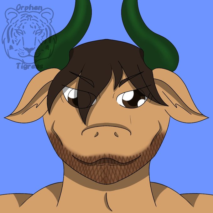 #bull #bullcharacter #bovine #furry #fursona #fursonacharacter #cute #cutekawaii #adorable #happy #digitalart #digitaldrawing #drawing #freeart #fanart #giftart #raffle #raffleart #furryart #headshot #horns