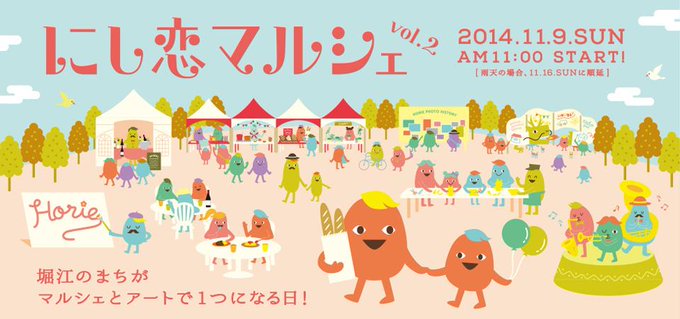 今週土曜日、堀江にある4つの会場を巡って堀江の魅力を楽しめるイベント「にし恋マルシェ」開催!アート展やワークショップ、飲食・物販マルシェ、堀江の人気スイーツ店の協力によるスイーツラリーまで!http://t.co/LYMX2DXyo7