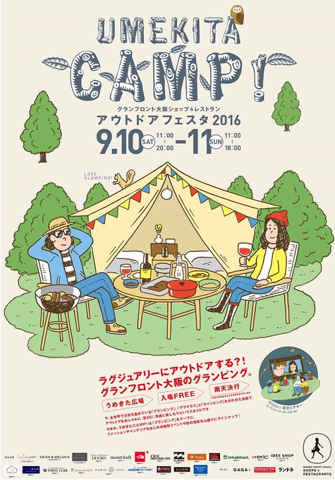 今年の、うめきたCAMP!は「グランピング」をテーマに、ファッションやインテリアをはじめ体験型イベントや旅の提案を⼭盛りにラインナップ!