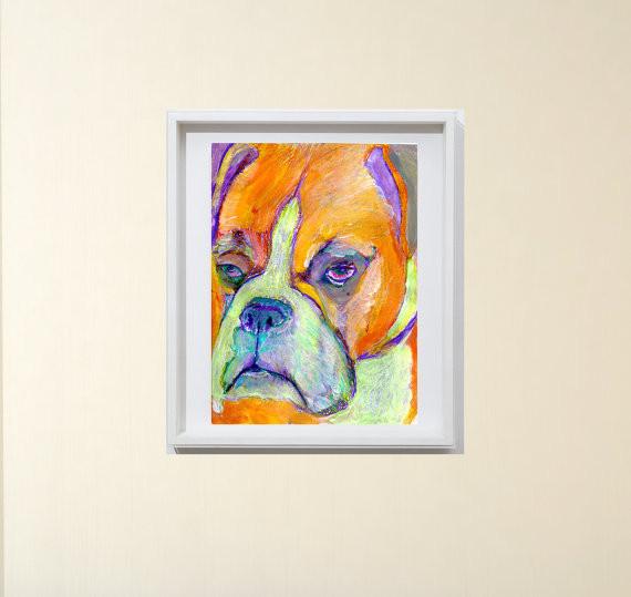Orange Boxer Dog painting abstract wall art print in Orange Purple and … http://t.co/ZI8PY3hBaR #dogs #BoxerDogGift