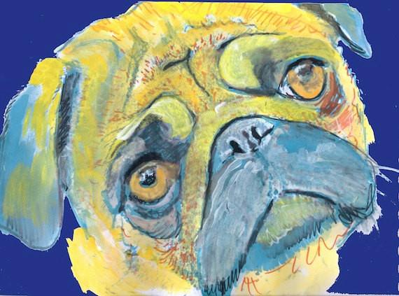 Pug Dog Painting, Print of Original Art 21 x 29.7cm Yellow/Blue colourful Pug dog art-holiday gift idea https://t.co/aQFlK4y2pr #decor #art #painting