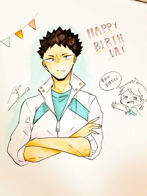 #岩泉一生誕祭2019 頼れるみんなの大エース! おめでとう🎊 もう1回ちゃんとお祝いします! 生まれてきてくれてありがとう。 これからも大好きです。 次はスガさんと日向描きます。