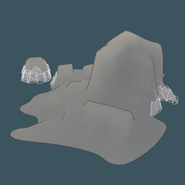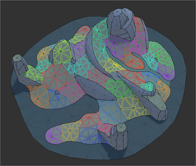 So, this is not the style I'm going for with this, but I though it was interesting. Now properly UV mapped, I can procedurally paint my procedural islands in world space. Here, I'm just painting the normals back on in blotches, transforming a low poly look to a sculpted clay look