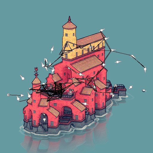 The animation is done through vertex shader flapping and smooth mesh swapping. The flap time is offset by vertical position, which makes them differ from each other and flap faster when going up. This thread by @matt_nava was very helpful: https://t.co/fbT9Rdx3KR