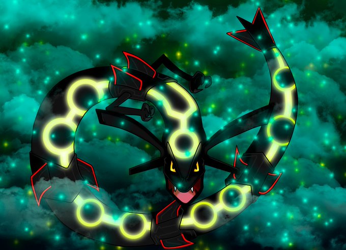 Rayquaza. Pokémon legendario que surca los Cielos. muy poderoso y uno de mis Favoritos