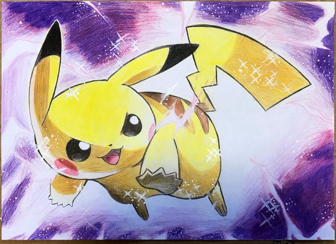 これはちゃんといっぱい色ある色鉛筆と白ペンを買った後の絵 ピカチュウが最後の模写かな