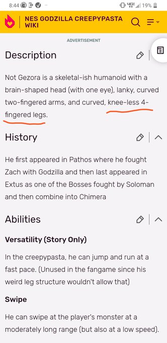 For D, going back to the Wiki's Description, "4-fingered" Legs, when Fanart D's only has two. Even when not going down there to count each individual Toe, I knew this was Incorrect. Heck, the Old Design of Not-Gezora proves Image D Wrong!