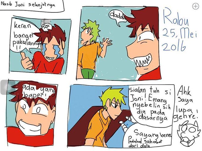 Ni komik yang bikinnya di ipad. Walaupun singkat - singkat banget tp tetap ada sambungannya! Oh ya judulnya Lejiro'…