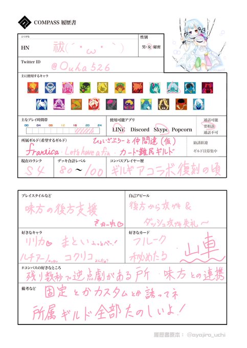 TLにボソボソ呟いているので、声掛けてくれると嬉しい|ω•)チラッ #コンパス #コンパス履歴書