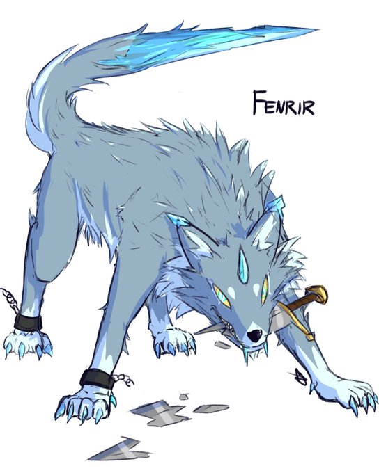 A child of Loki; Fenrir was feared by the gods as he grew larger and larger, and kept breaking his chains. He was eventually gagged with a sword so he could not bite any more gods, but he will break free during Ragnarök.