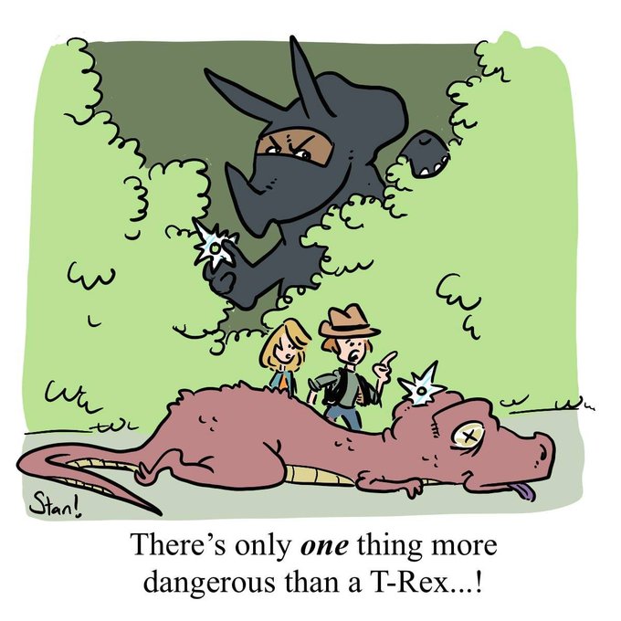 The ever-amazing Stan! did a cartoon of this universal truth revealed by one of my #GameNightQuote posts ... "You gotta look out for that ONE ninja triceratops!"
