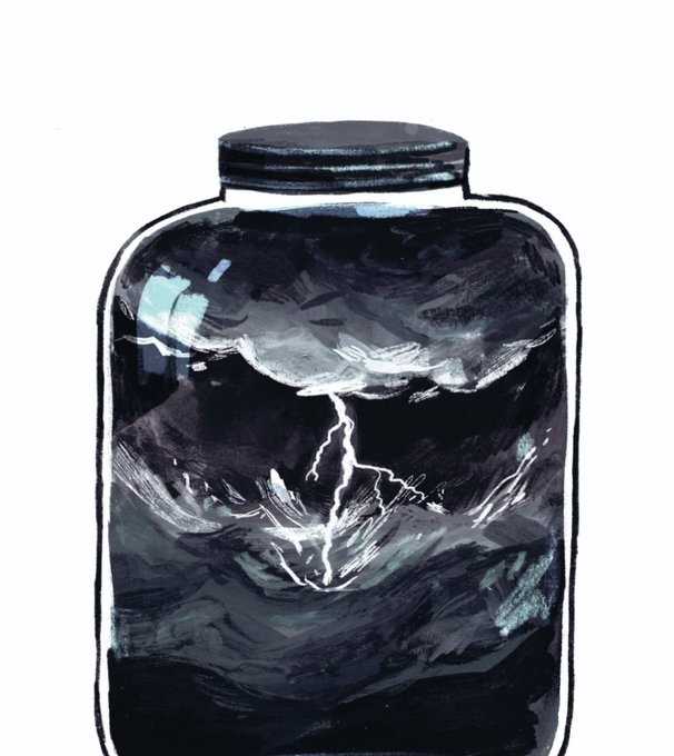 This powerful metaphor 'The Storm in a Jar' was used by @SamLangleySwain 's son to describe his building anger. This #weekend Sam will be at @kenilwortharts inviting children to create a giant #storm display, just like this awesome #illustration from @katiecottle_ 10-12 Sat & Sun